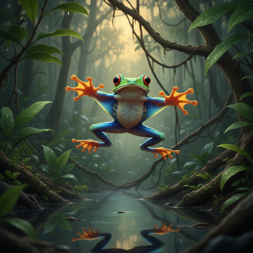 Khám phá thế giới ếch bay (Rhacophorus): Từ cấu tạo màng chân đặc biệt đến kỹ thuật lượn điêu luyện trong rừng nhiệt đới. Tìm hiểu tập tính và bảo tồn ếch bay.