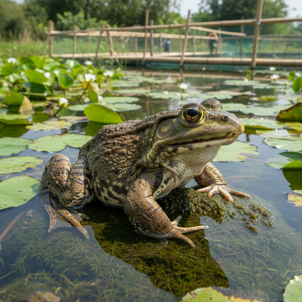 Hướng dẫn chi tiết kỹ thuật nuôi ếch bò Mỹ (Lithobates catesbeianus), giá giống, giá trị kinh tế và cảnh báo về tình trạng xâm lấn môi trường tại Việt Nam.
