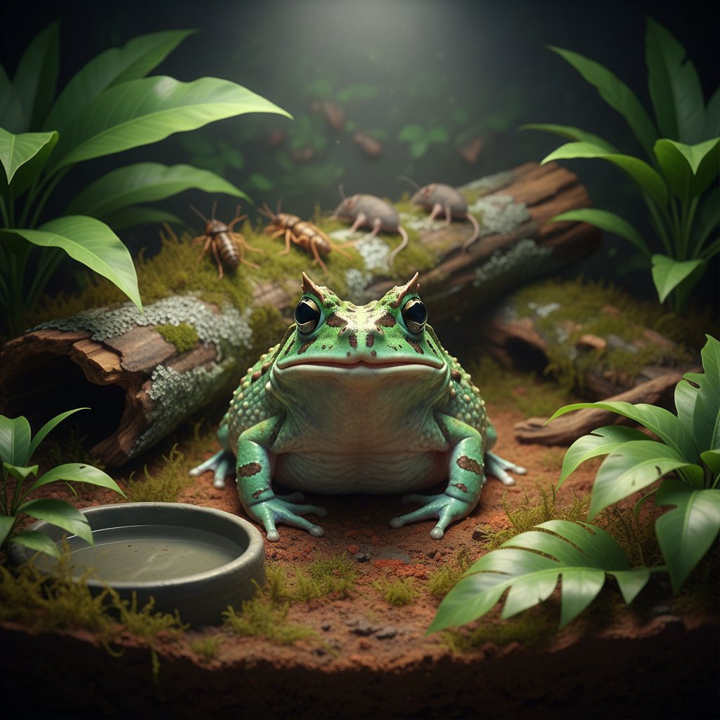 Khám phá thế giới ếch sừng Pacman (Ceratophrys). Hướng dẫn chi tiết cách nuôi, chế độ dinh dưỡng, thiết lập bể và phòng bệnh giúp ếch phát triển khỏe mạnh.
